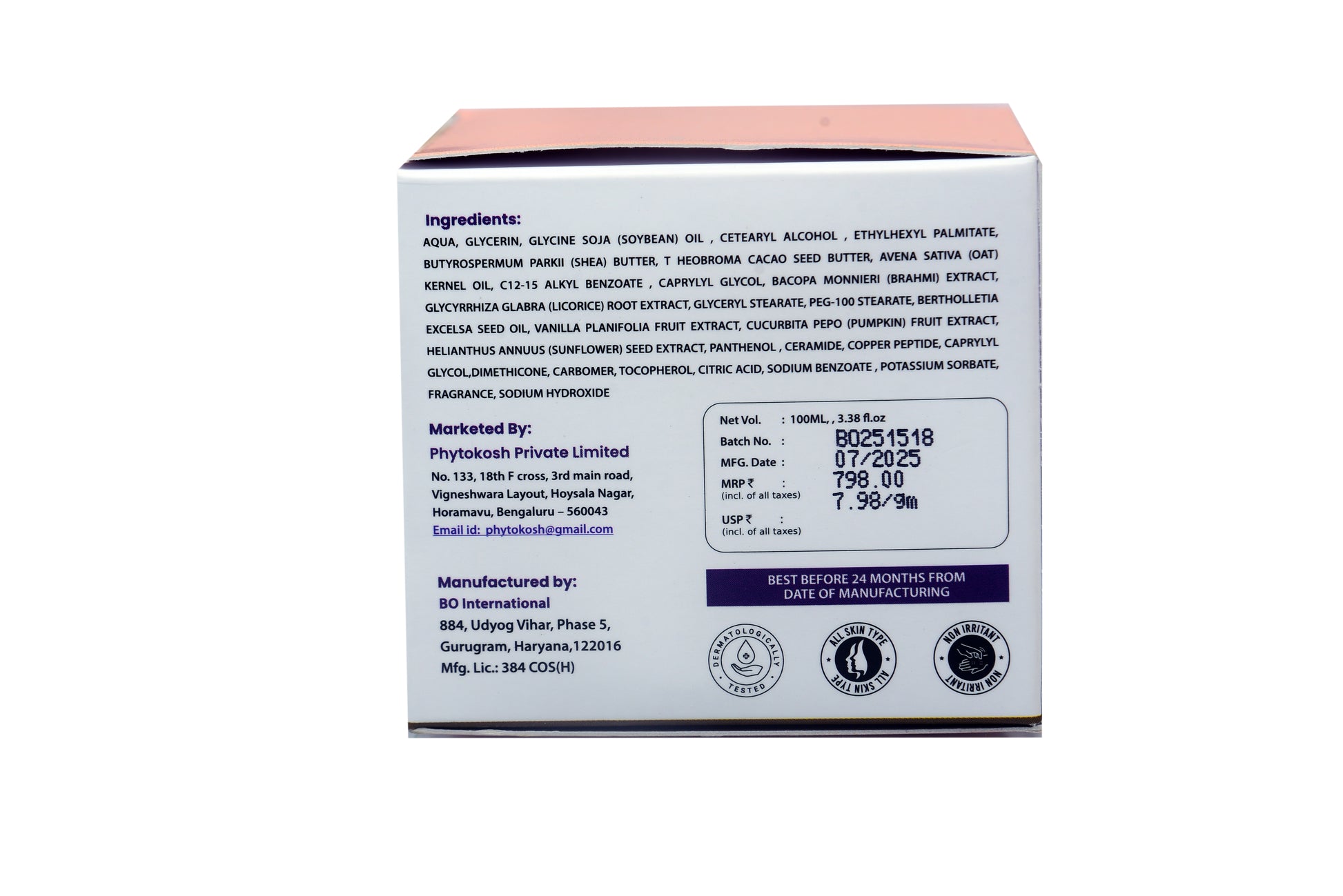 AQUA, GLYCERIN, GLYCINE SOJA (SOYBEAN) OIL, CETEARYL ALCOHOL, ETHYLHEXYL PALMITATE, BUTYROSPERMUM PARKII (SHEA) BUTTER, THEOBROMA CACAO SEED BUTTER, AVENA SATIVA (OAT) KERNEL OIL, C12-15 ALKYL BENZOATE, CAPRYLYL GLYCOL, BACOPA MONNIERI (BRAHMI) EXTRACT, GLYCYRRHIZA GLABRA (LICORICE) ROOT EXTRACT, GLYCERYL STEARATE, PEG-100 STEARATE, BERTHOLLETIA EXCELSA SEED OIL, VANILLA PLANIFOLIA FRUIT EXTRACT, CUCURBITA PEPO (PUMPKIN) FRUIT EXTRACT, HELIANTHUS ANNUUS (SUNFLOWER) SEED EXTRACT, PANTHENOL, CERAMIDE, COPPER PEPTIDE, DIMETHICONE, CARBOMER, TOCOPHEROL, CITRIC ACID, SODIUM BENZOATE, POTASSIUM SORBATE, FRAGRANCE, SODIUM HYDROXIDE.
